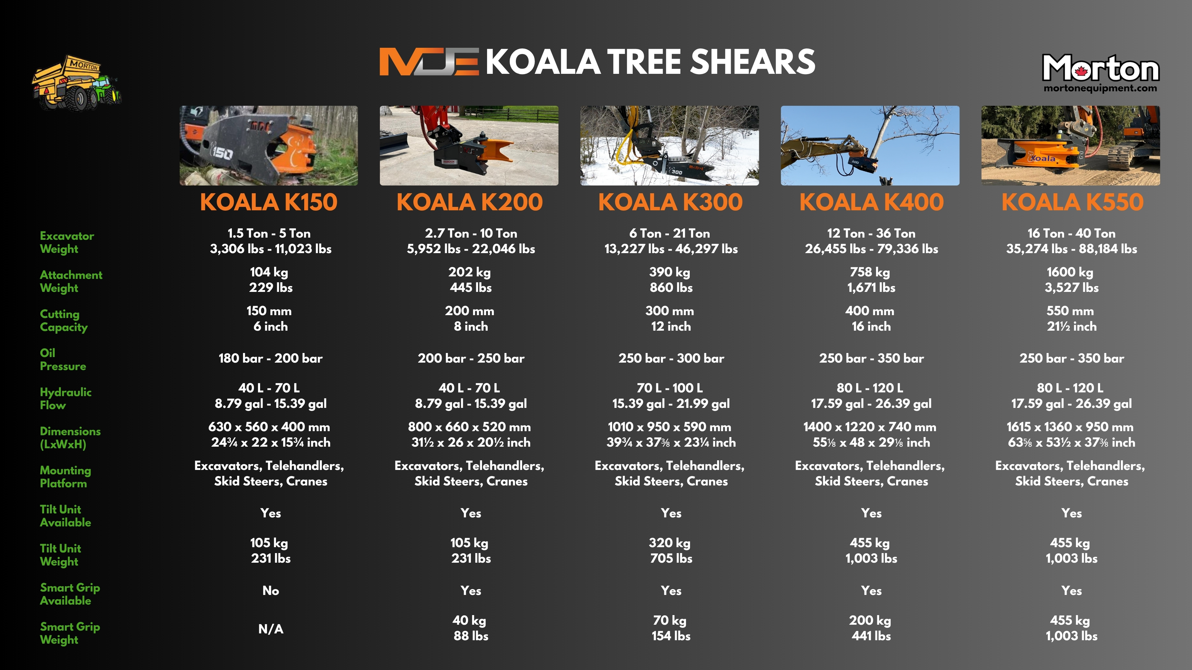 With five models available, suitable for excavators ranging from 1.5 to 40 tonnes, there's a Koala Tree Shear to meet your specific needs.